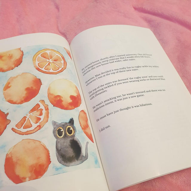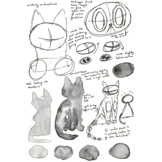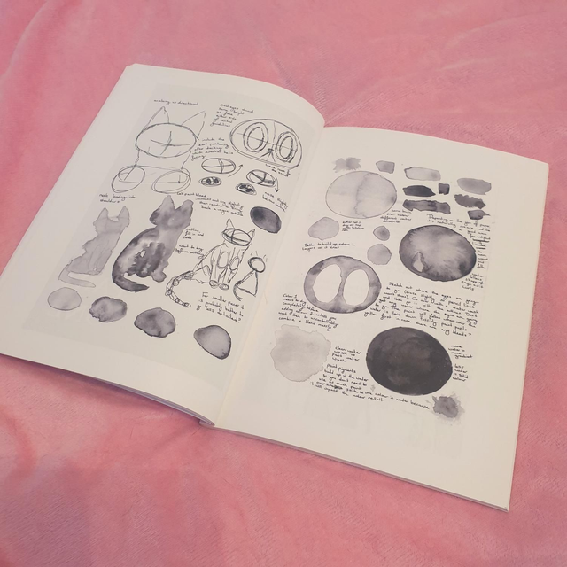 "My very first art book consists of pages from the first sketchbook I’ve owned in ten years. It is full of water colour paintings, anatomy practice, layering experiments, annotations and lots of cat sketches."