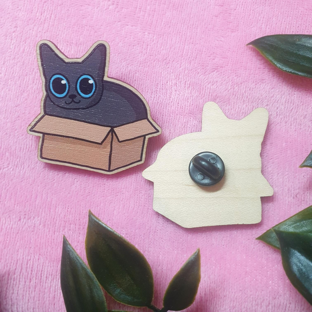 Box Cat Wooden Pin Badge