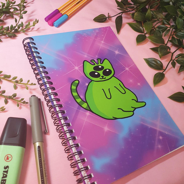 A5 Green Alien Cat Notebook